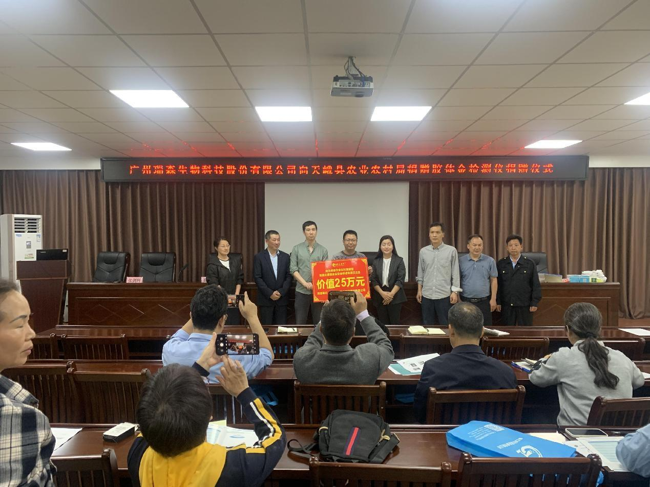 在捐赠仪式上,乐动在线平台向天峨县捐赠先进检测仪器设备共5套,价值25万元。表达了乐动在线平台公司对广西红色革命老区“中国长寿之乡”天峨县的热心支持,旨在希望未来能够更好的为革命老区在食品安全快检监督工作开展方面提供技术保障和优质服务,为天峨县老百姓能够吃上绿色、安全、放心的食用农产品贡献企业的一份力量。