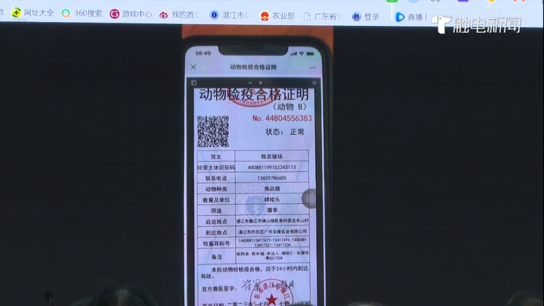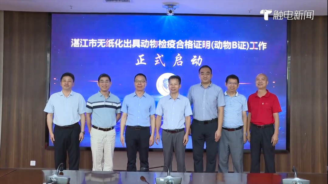 2023年7月7日, 湛江市无纸化出具动物检疫合格证明和动物B证试点工作正式启动,成为广东省首个在动物产地检疫环节实现无纸化出证的地级市,标志着湛江动物检疫和兽医行政监管工作迈入无纸化时代。